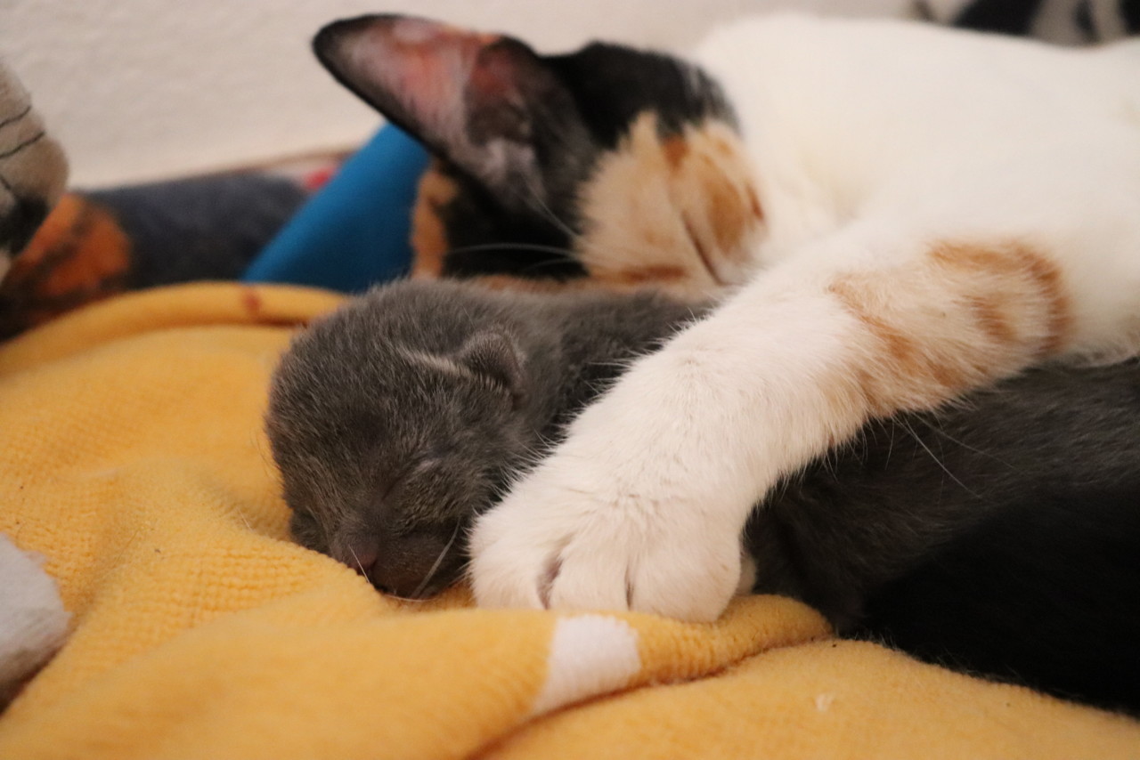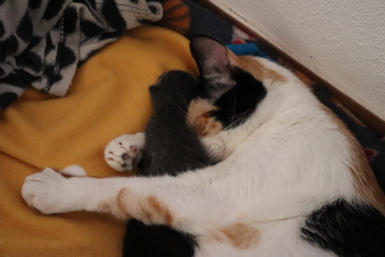 Agora é fazer figas para que corra tudo bem com estes dois comilões. Têm bar aberto na verdade! A Shi continua a surpreender-me todos os dias, com a sua dedicação e amor. Tem acesso total à casa mas não os deixa por mais de 15 minutos, gosta de dar as suas voltas e fazer um ronrom rápido em cima de mim mas os bebés são a sua prioridade. Estou babadérrima de orgulho sabem?