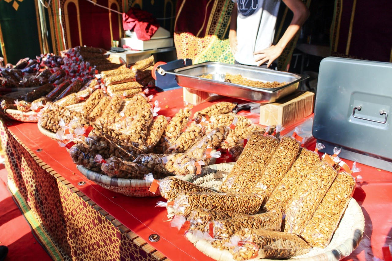 Um dos aspectos que me leva ir a este tipo de feiras são os produtos tradicionais. Experimentámos o chá marroquino, absolutamente delicioso, e provámos sementes de girassol caramelizadas. Às últimas não conseguimos resistir e trouxemos um saquinho de sementes de girassol para o caminho até ao carro. No entanto, existiam muitas especiarias e outros tipos de comida tradicionais.