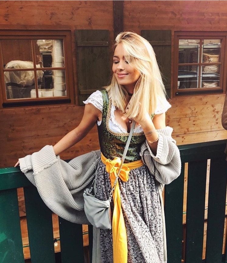 Os trajes típicos têm o nome de Dirndl e são peças muito caras mas lindas de morrer. Podem ser blusas com mangas curtas ou longas, colete típico a combinar com os tecidos que forem utilizados no vestido ou na saia. Desde que bordados ou em renda e longos ou até à altura do joelho têm sempre estas duas opções. Normalmente passam de geração em geração e têm sempre estas regras. O avental não é obrigatório mas é um dos musts e também tem uma regra para ser utilizado. As mulheres solteiras amarram o laço do avental no lado esquerdo do corpo enquanto as comprometidas utilizam o laço no lado direito. Já as viúvas terão que fazer o laço atrás.