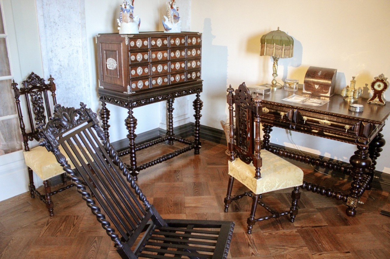 O espólio do palácio era dos mais ricos do país devido às inúmeras coleções reais que foram doadas ou deixadas pela Coroa. No entanto, como eu estava a dizer, o mobiliário e os adereços que enchem as divisões não estão com a disposição ideal nem identificados com informações básicas como a quem pertenciam, quem os doou ou o que são. Além disso, as obras de restauro são incrivelmente longas e ,apesar de ser o palácio que visito mais vezes, é raro encontrar todas as alas disponíveis para visita. Por 14€ merecíamos mais informação! Sinto que quem não está dentro da história do palácio, sai mais confuso do que quando entrou. É apenas uma crítica construtiva de alguém que gosta de história, adora o palácio e sente que estão banalizar um bocado a importância da história do palácio mais belo da Europa. Muitas das peças são únicas e a falta de informação entristece-me.